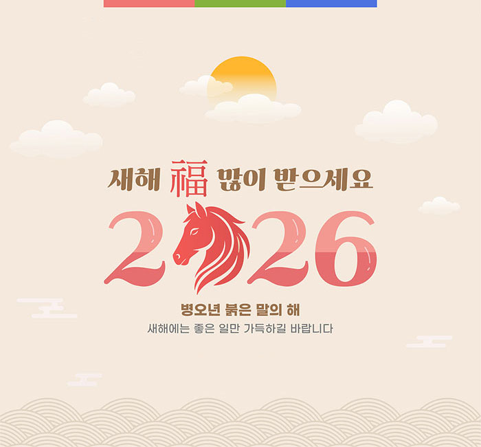 안녕하세요. 사단법인 한국기능연합회입니다. 2026 병오년 붉은 말의 해입니다. 우리나라를 대표하는 명절인 설이 다가왔습니다. 지난 한해 아낌없이 보내주신 성원에 너무나 감사드립니다. 올해도 대한민국 기능인들의 노고에 깊은 감사드리며, 설 연휴에 가족분들과 행복한 연휴 되시길 바랍니다. 새해 복 많이 받으시길 바랍니다.